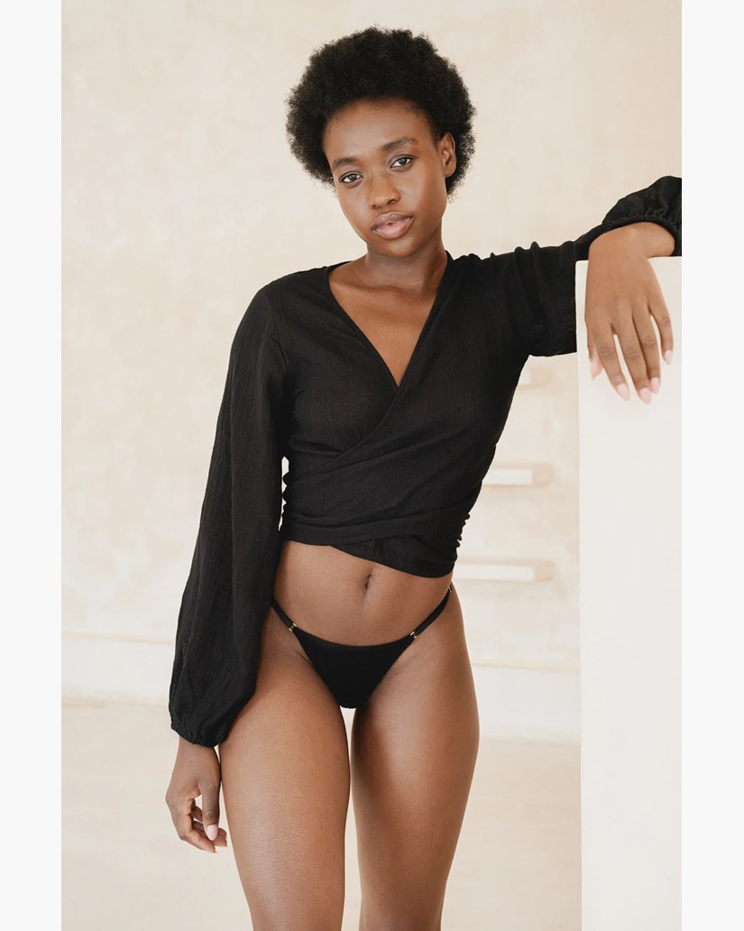 Med varje tvätt blir materialet ännu mjukare och vackrare, vilket gör Ramie Wrap Top till ett långsiktigt och hållbart val i garderoben.